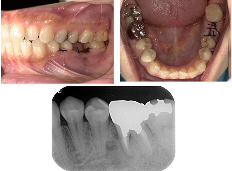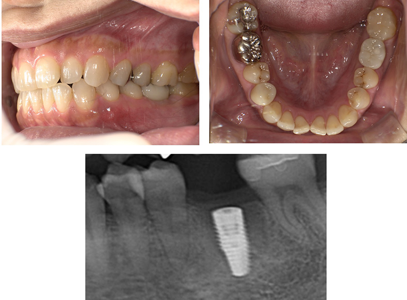| 主訴 | 時々腫れるということで来院。歯根破折を認め、抜歯適応となった。欠損部分のインプラントを希望。 |